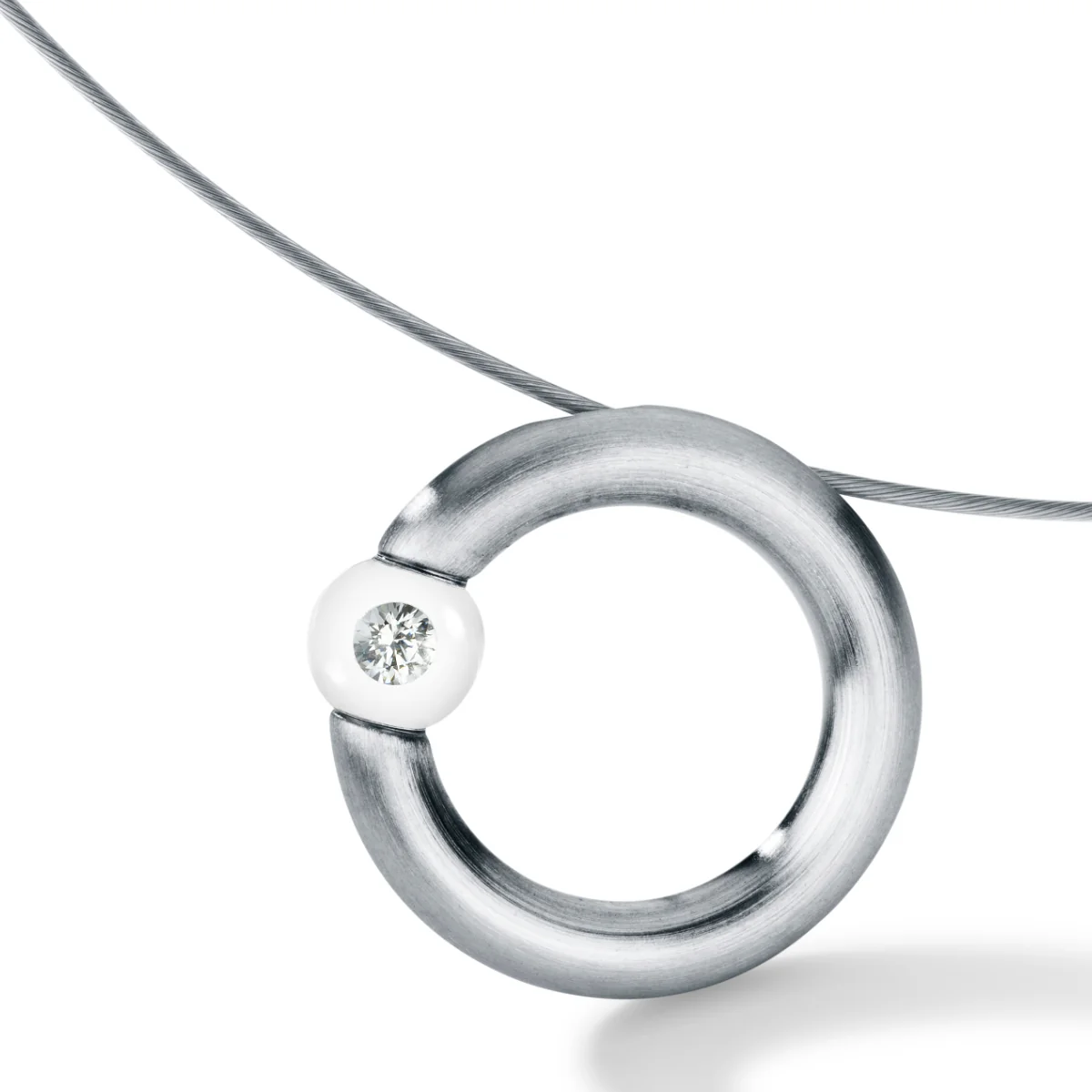 Diamantanhänger RUND 20 mm, mit DIAMONDS IN GLASS 6 MM schwarz Edelstahl oder Damaszenerstahl