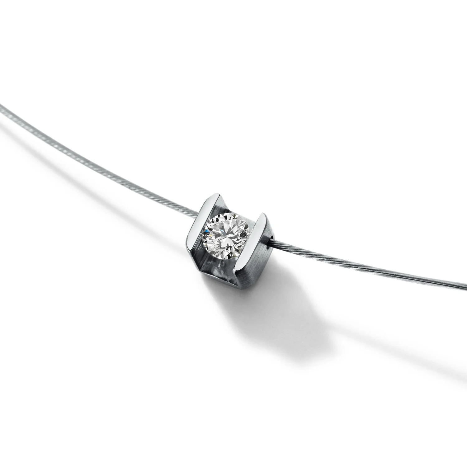 Diamantcollier mit Brillanten TW VS in verschiedenen Größen, CUBE, Edelstahl mit Seil 0,5 mm