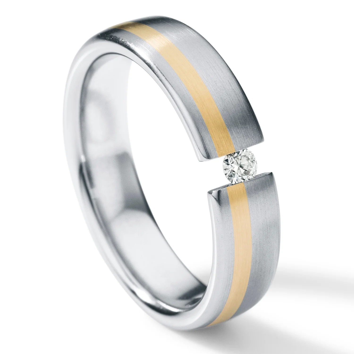 Diamantring mit Brillant 0,01 oder 0,02 oder 0,06 ct. TW VS, Edelstahl, 5 mm breit, 18 Karat Gelbgoldeinlage