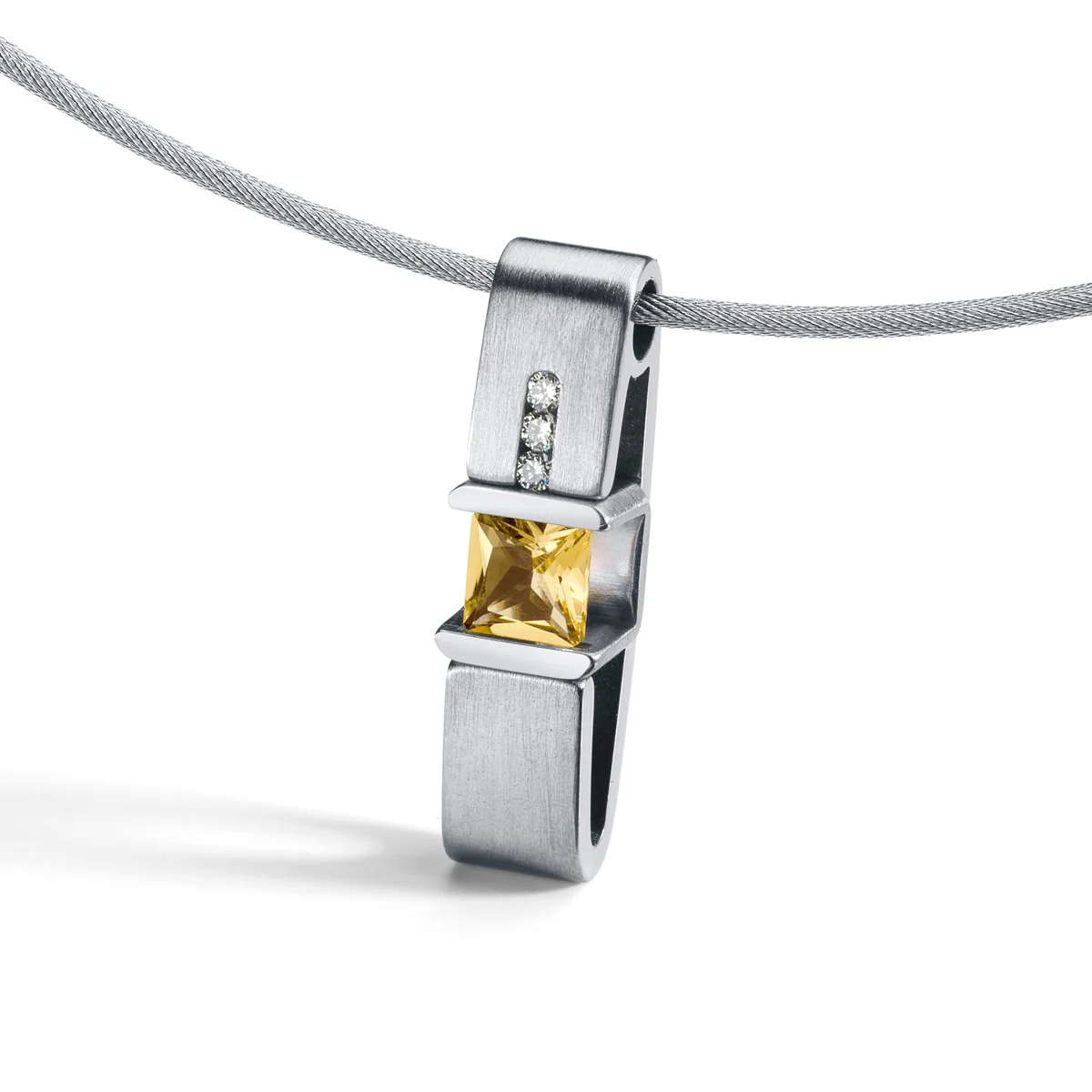 Farbedelsteinanhänger CUBE+ mit 3 Brillanten á 0,008 ct. TW VS, Edelstahl ohne Collier