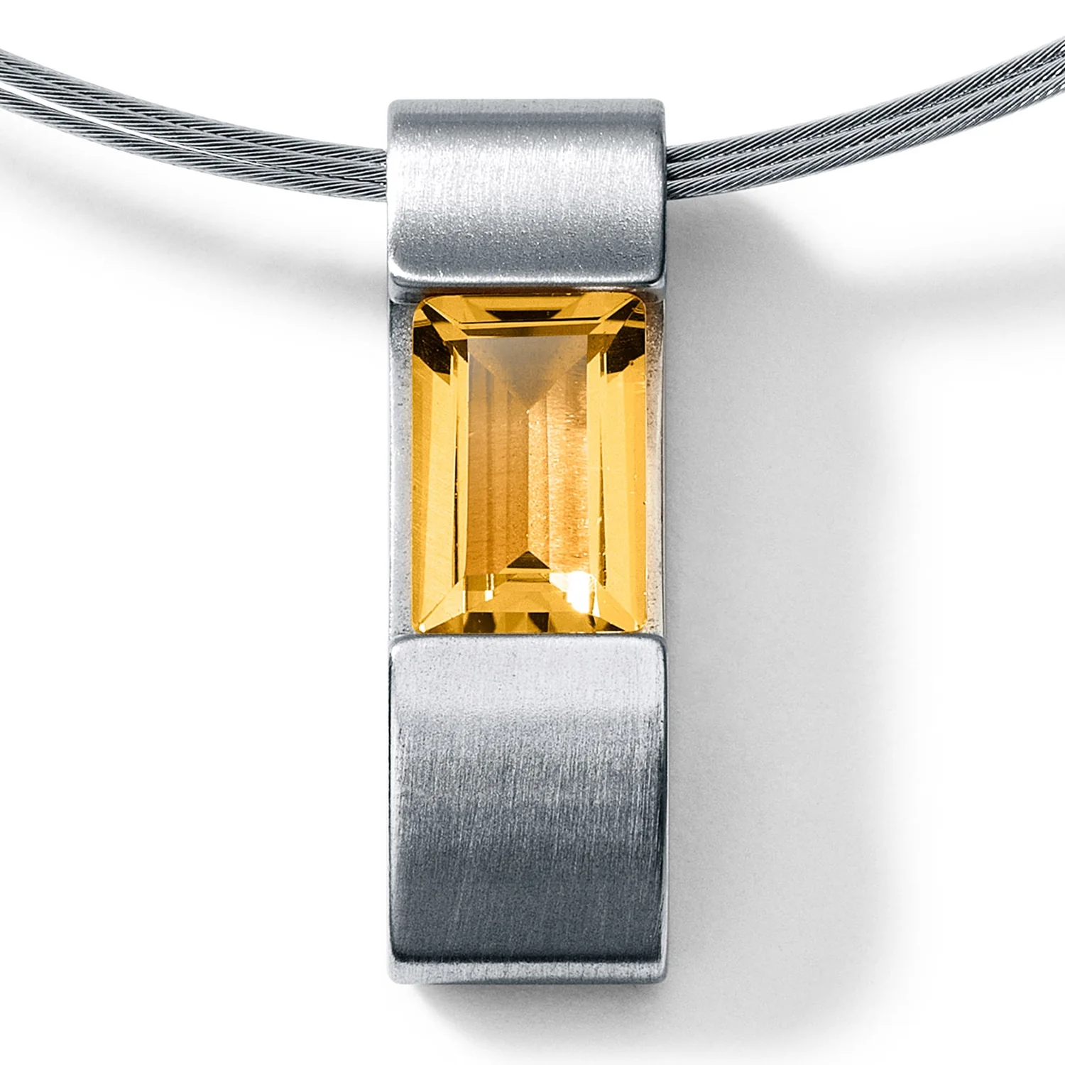 Der Farbedelstein wird durch die Spannung im Anhänger gehalten, wodurch es wirkt, als ob der Stein schwebt.