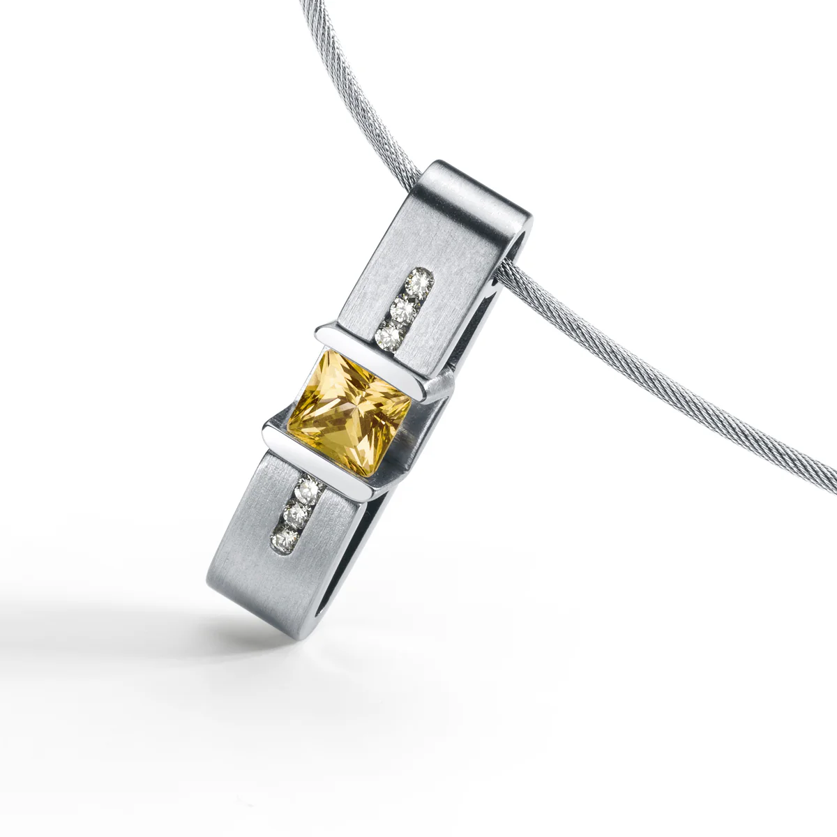 Farbedelsteinanhänger CUBE+ mit 6 Brillanten á 0,008 ct. TW VS, Edelstahl ohne Collier
