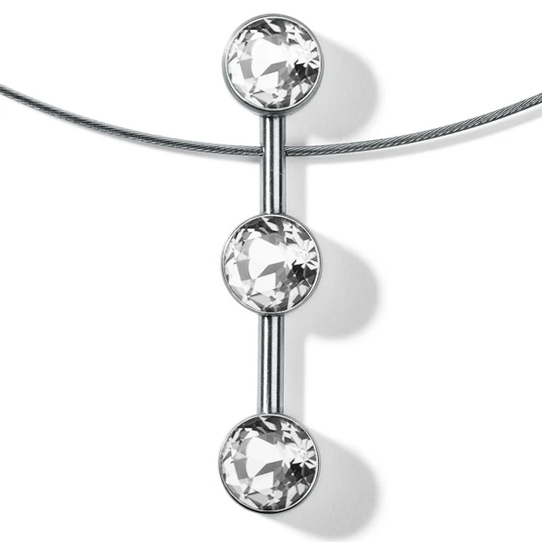 -70%Farbedelsteincollier LINEAR mit 3 Farbedelsteinen auf Edelstahlseil mit Druckknopfschließe—