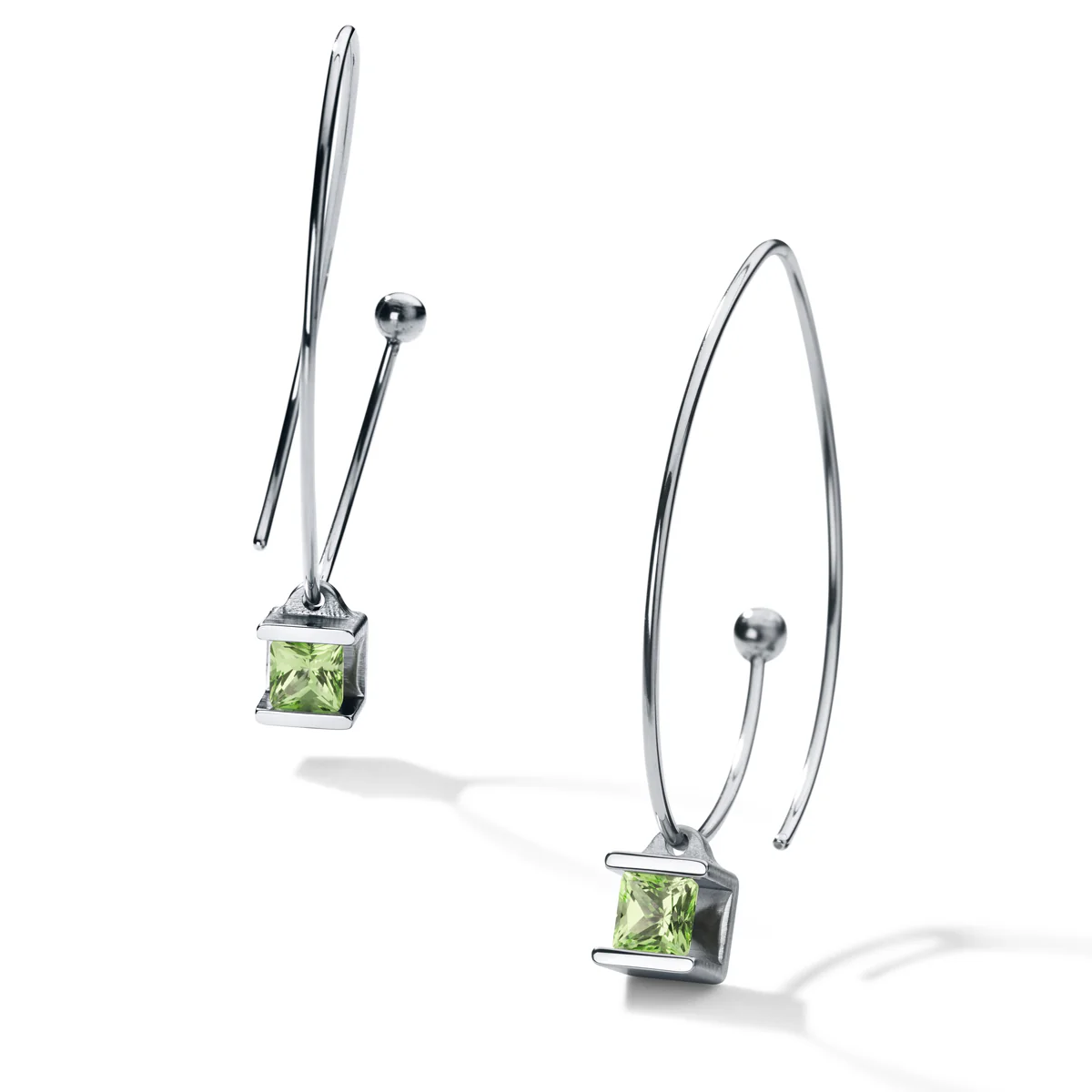 Farbedelsteinohrhänger CUBE 4 Edelstahl auf Edelstahlbügel der auch alleine getragen werden kann