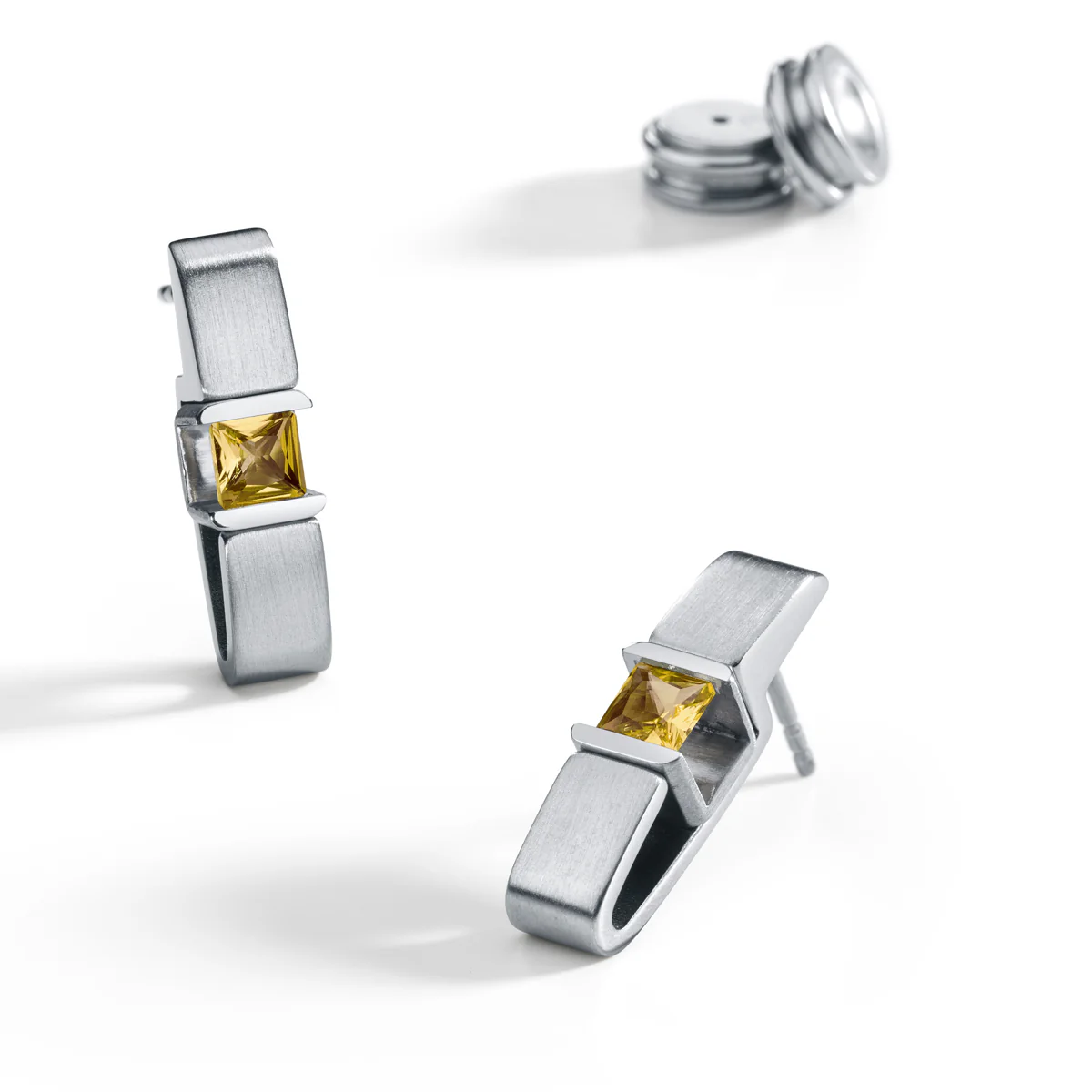 Farbedelsteinohrstecker CUBE+ Edelstahl mit Humphrey Ohrpatent