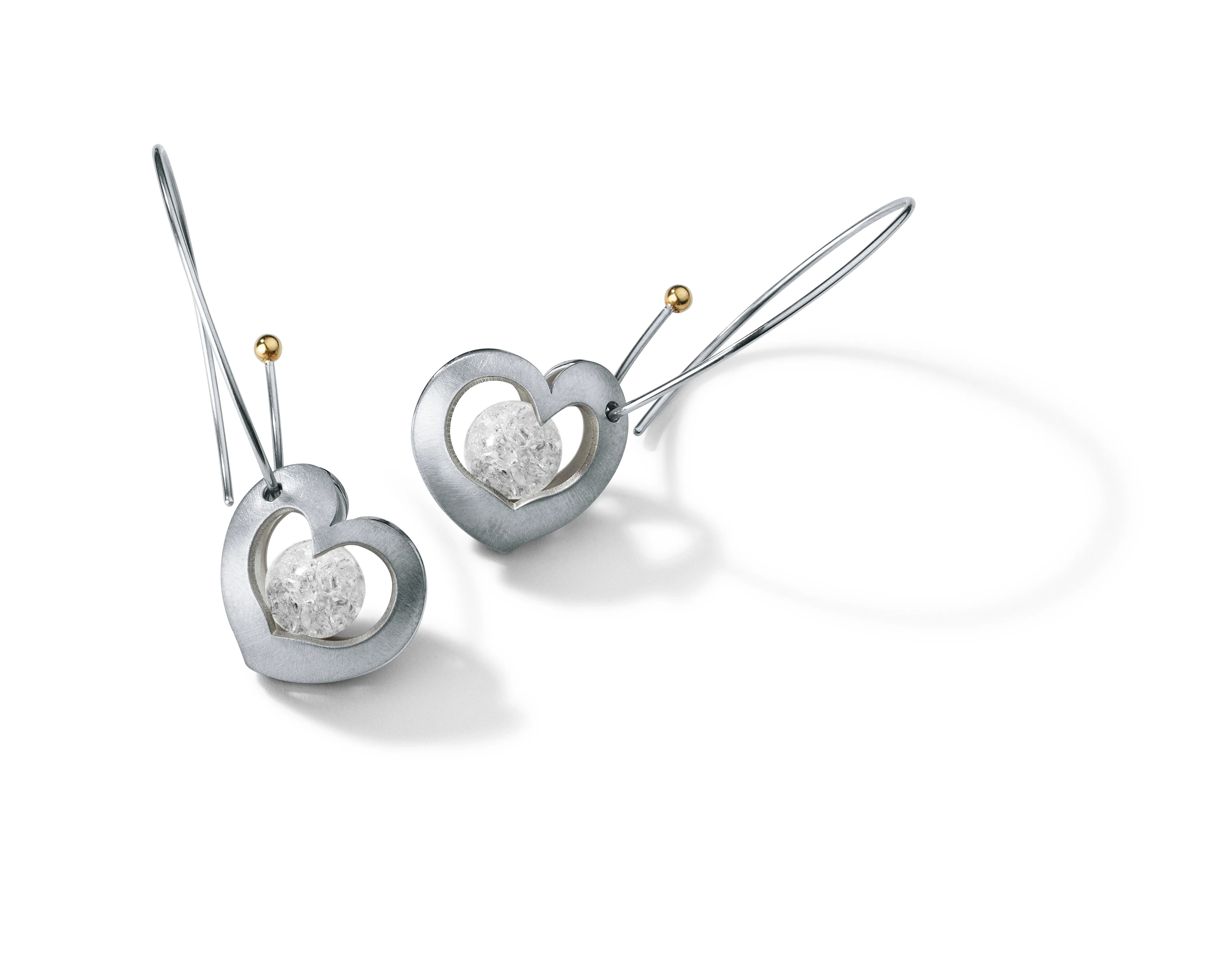 Herzohrschmuck mit loser Kugel, 19 x 17 mm, ALPENHERZ, Edelstahl auf Bügel