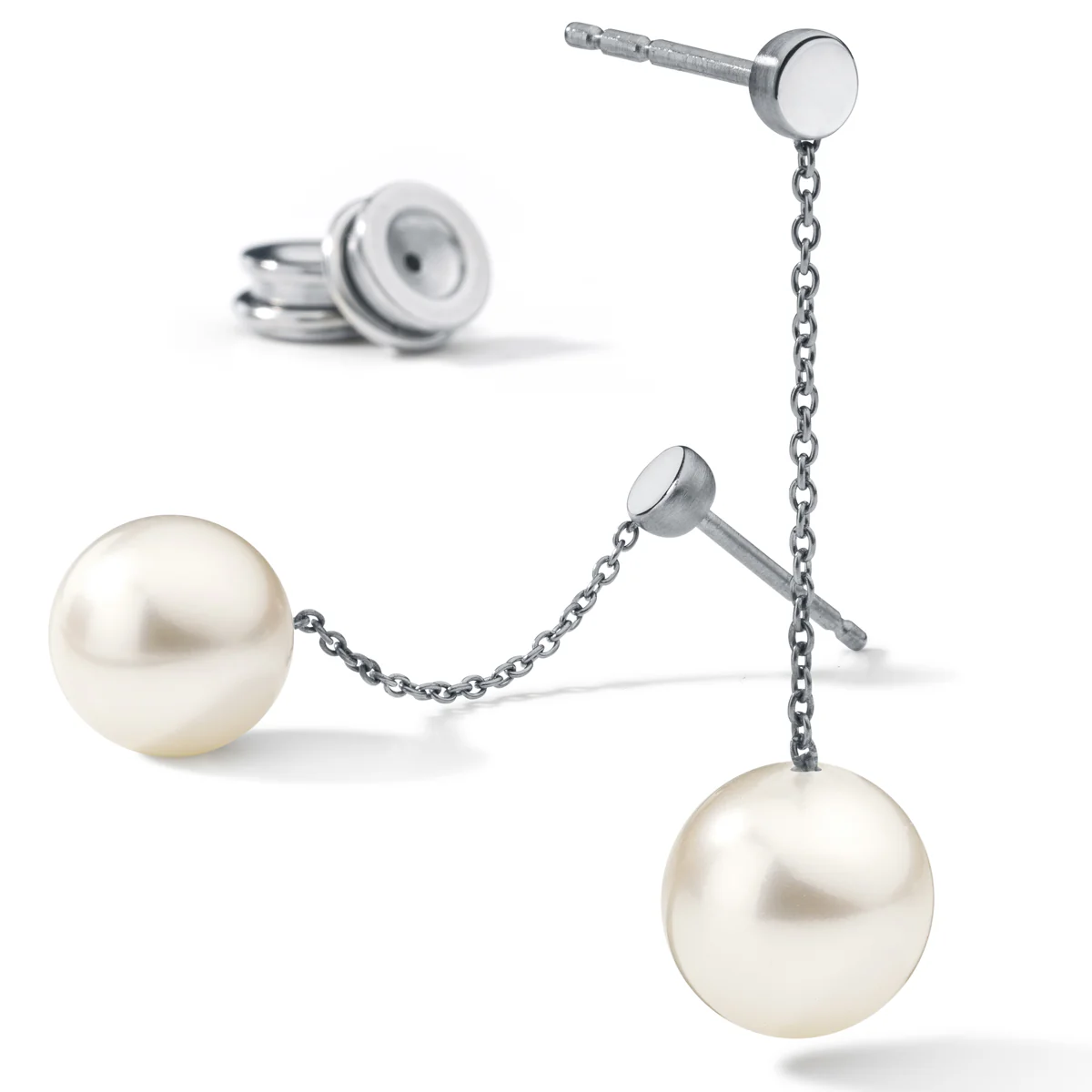 Perlohrstecker, Perle an Ankerkette, Edelstahl