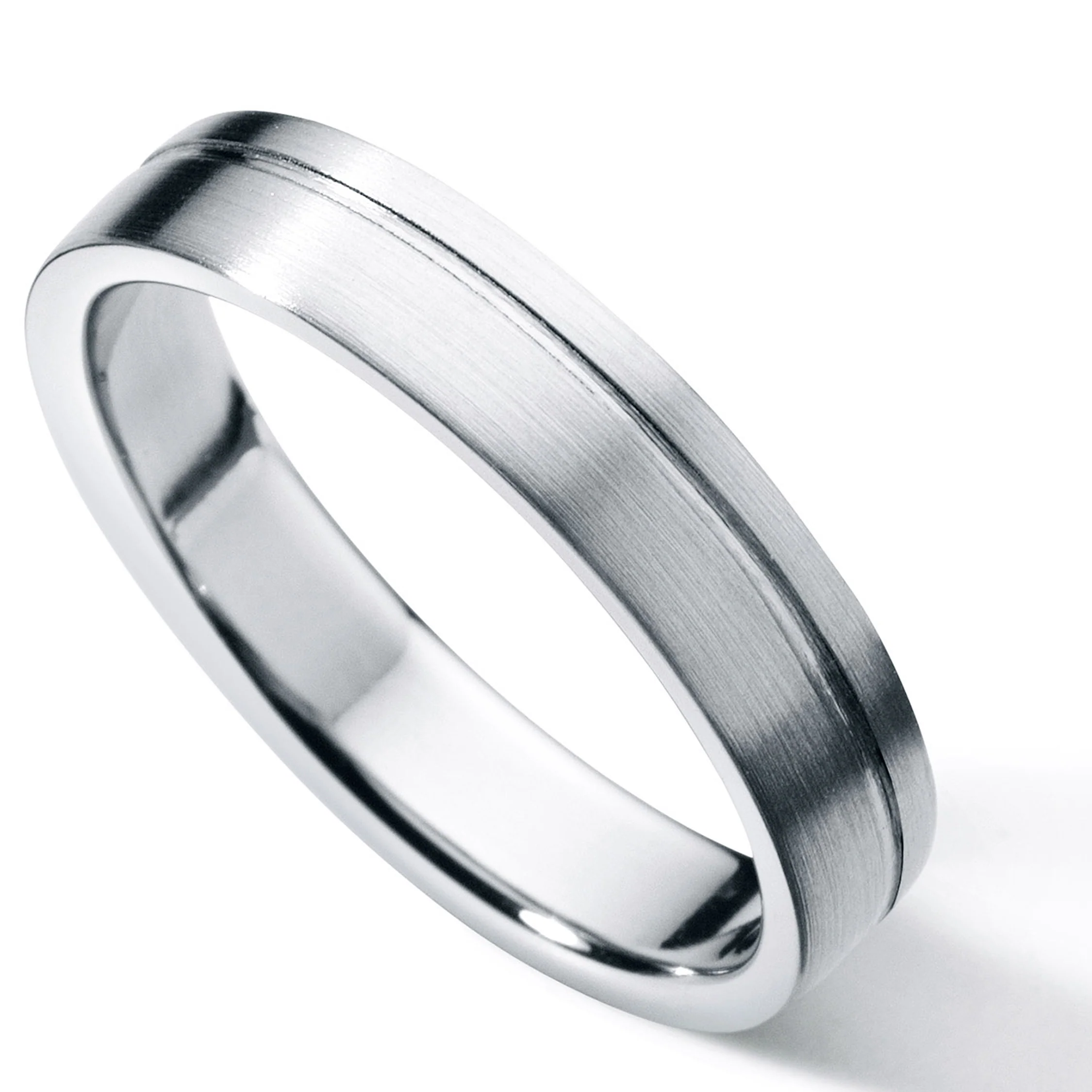 Die Seiten- und Innenflächen des Ringes sind poliert, die Außenfläche ist mattiert, die Kanten sind gerundet. Dieser Ring ist besonders dünn gearbeitet, wodurch ein hoher Tragekomfort entsteht.